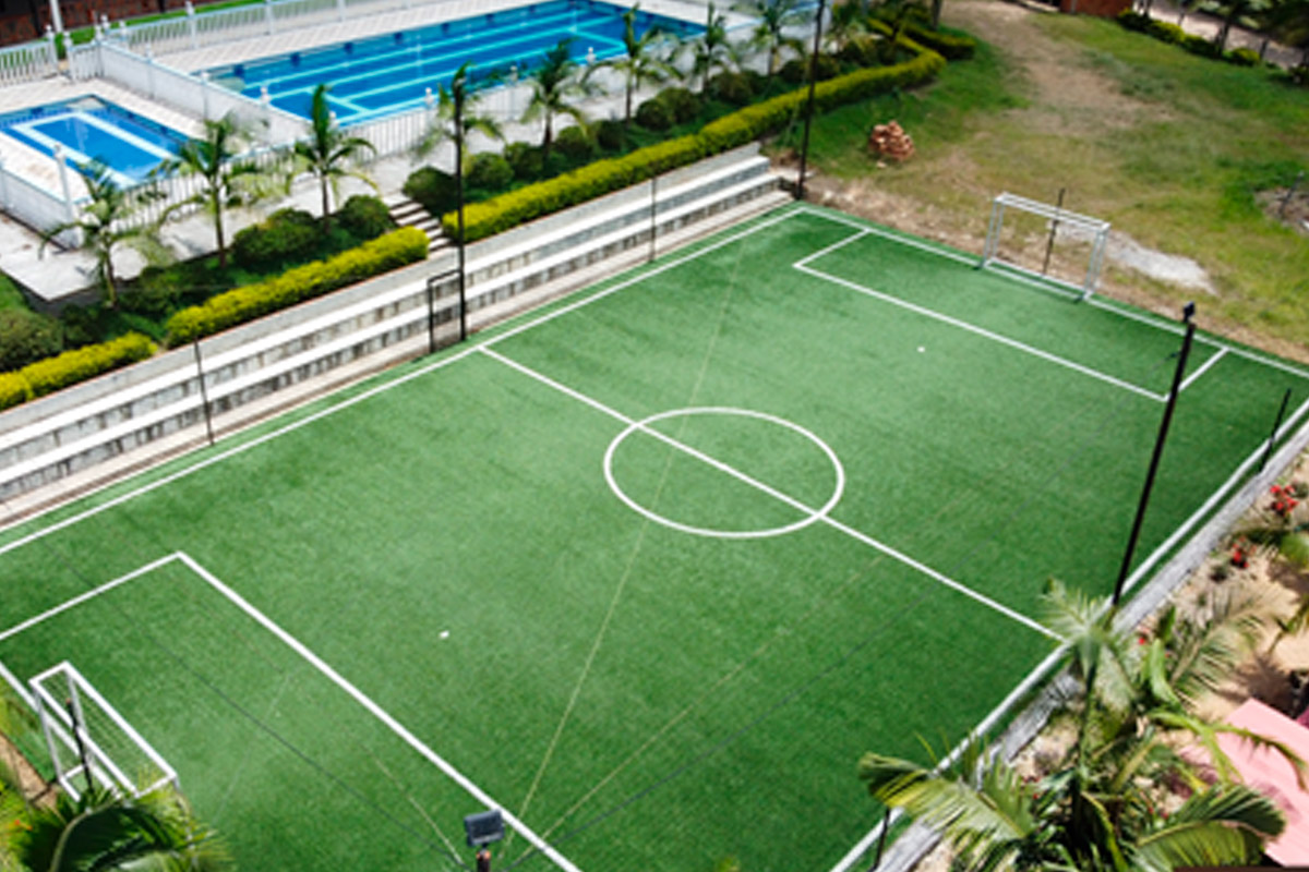 Puedes disfrutar de piscina y cancha sintética para vivir momentos de diversión con tu familia y amigos.